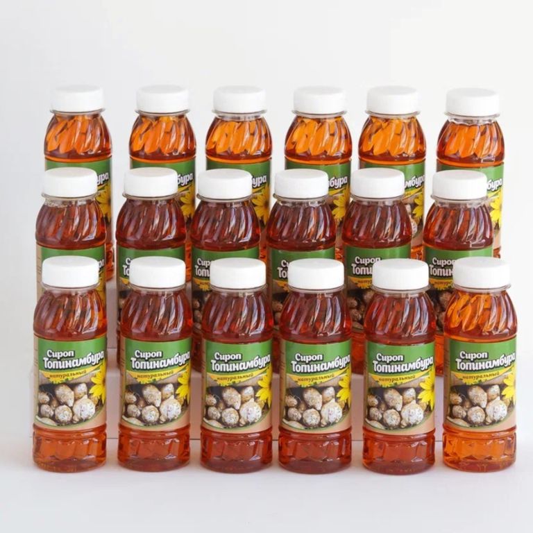 Состав: клубни топинамбура, вода. Сухих веществ в сиропе не менее 74%. Допускается легкий осадок и опалесценция.